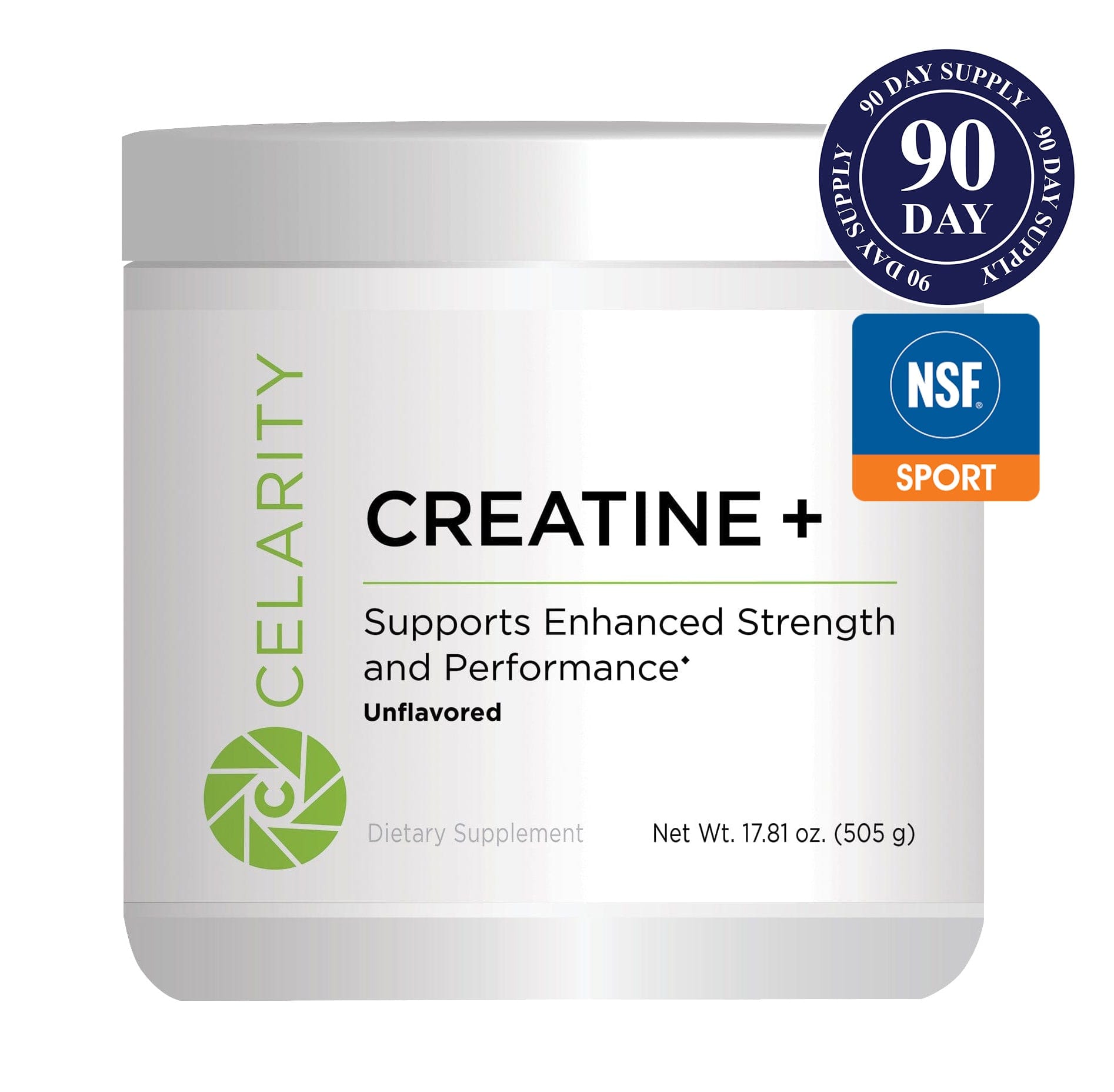 Creatine + delivers 5g of pure creatine monohydrate to support muscle recovery, brain health, energy production, and healthy aging. Creatine + by Celarity is NSF Sport Certified for purity and safety—trusted by athletes and professionals for clean, effective, research-backed performance. This formula is free from GMOs, gluten, dairy, and unnecessary additives.