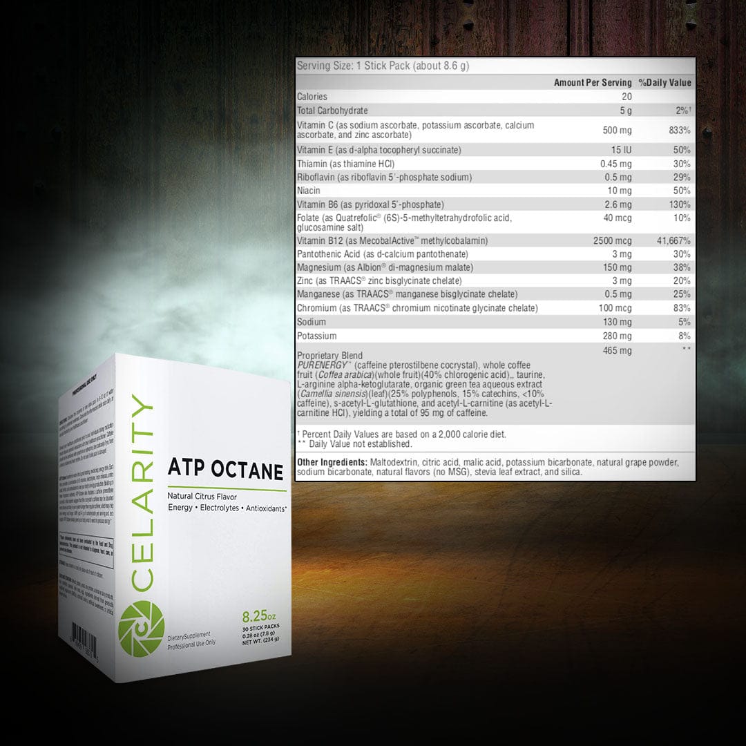 ATP Octane: Combine 1 packet with 6-12 oz of water and consume 30 minutes before a workout.
